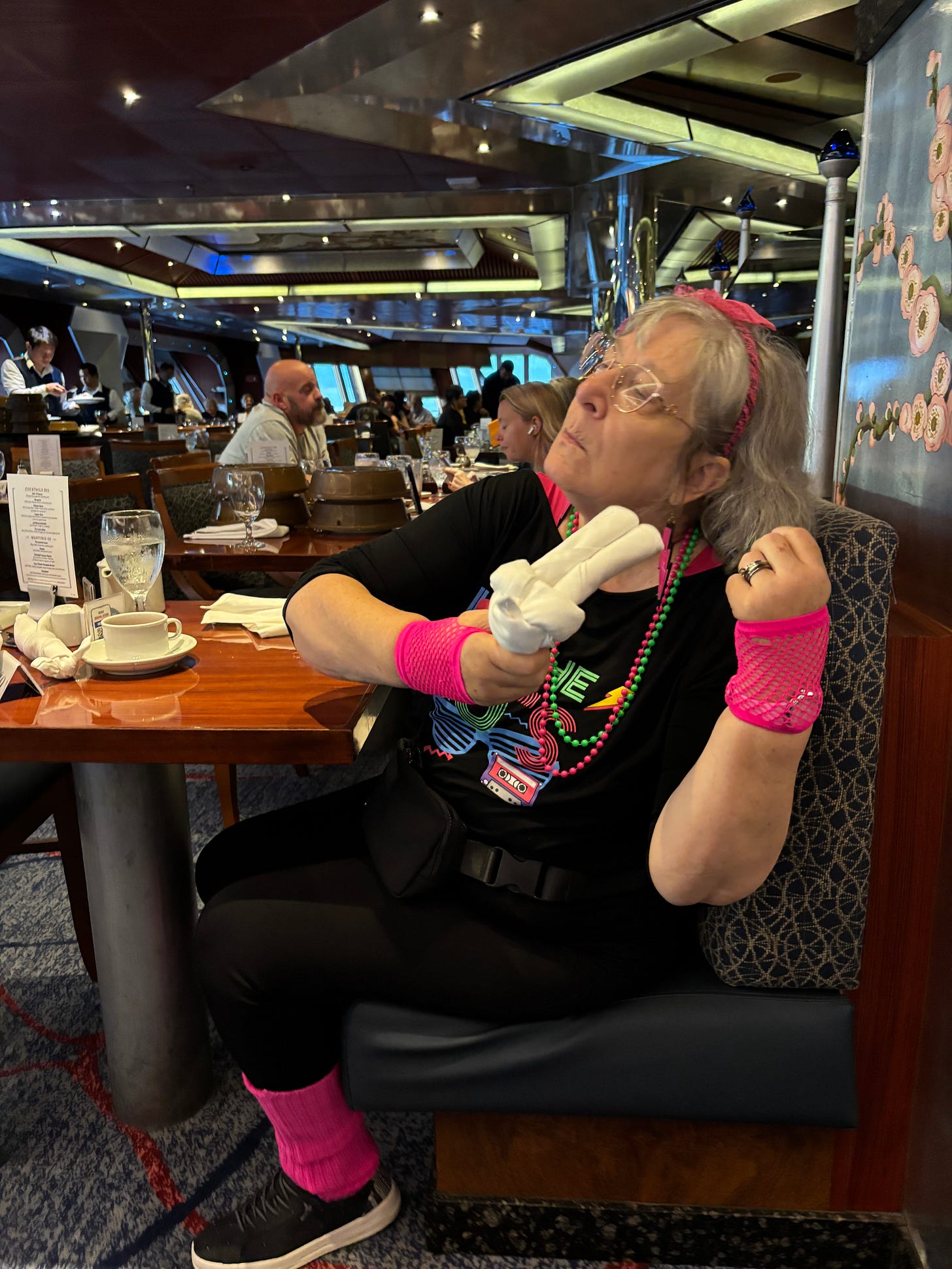 We had our big table to ourselves the first two nights, and then three solo women joined us on the third night. Two left their non-traveling husbands behind and they were friends. The third one is a retired Navy nurse. It’s kind of hilarious that Joseph is the only man. If Ellen had joined our table, it would have been five women and him.
