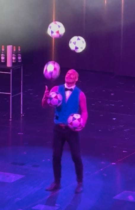 This photo is actually from the juggling show three nights ago. Last night, it was two brothers from a French-speaking country, but I didn’t get a good picture of them.